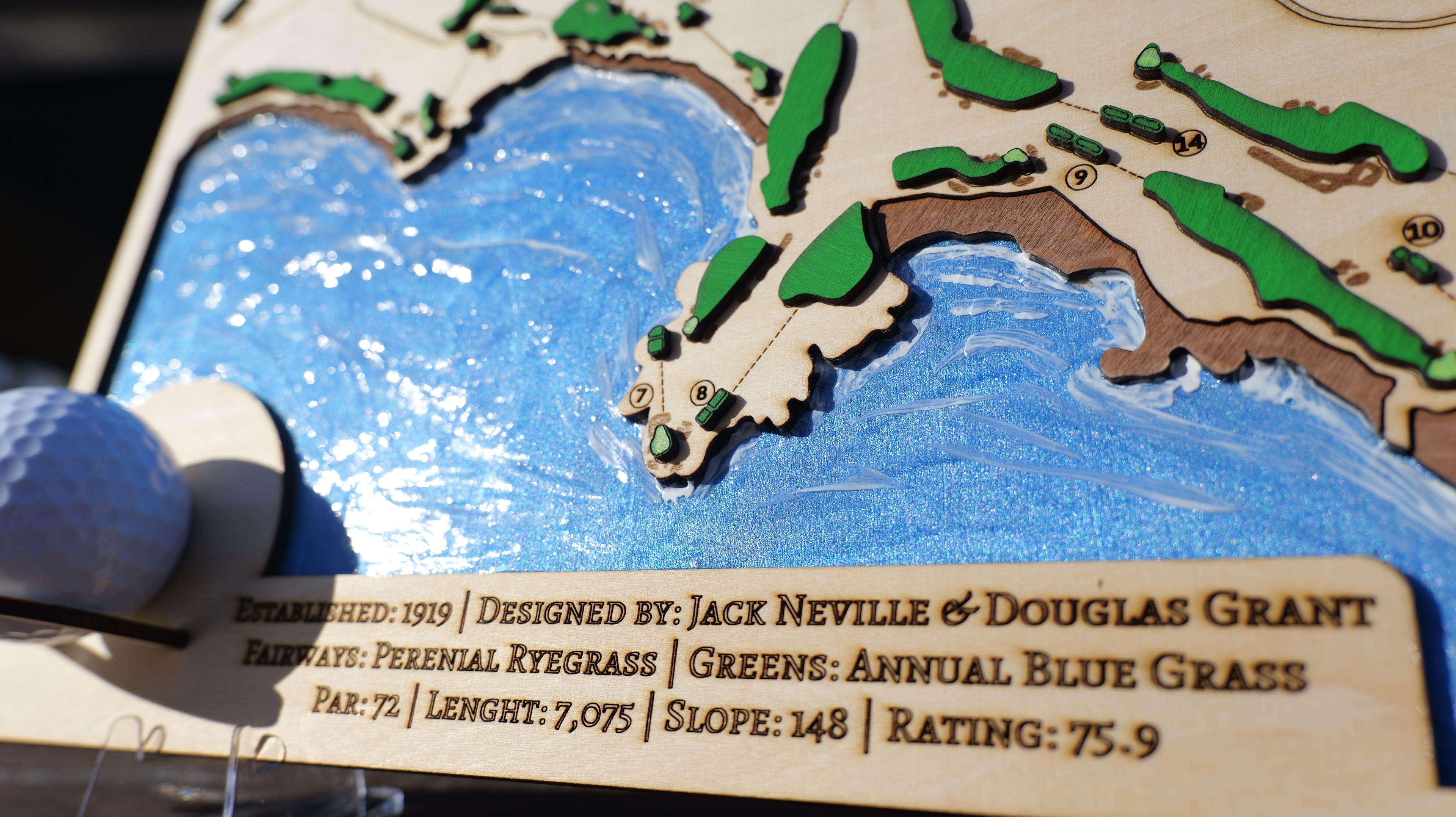 Each sign is hand-crafted from real wood and built one at a time, not printed or mass-produced. The course layout is rendered with layered 3D depth to give it dimension and presence. The goal is to create something that feels personal, accurate, and thoughtfully made.